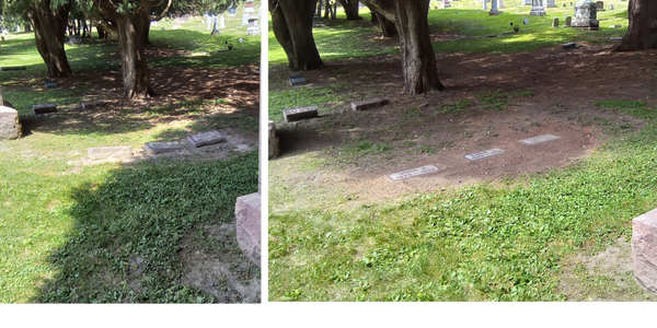 Project monuments are a group of monuments that all need similar repair service. It could be a line of lawn level monuments that have become misaligned, larger sunken monuments or monuments in need of new bases. We also make slotted bases for smaller monuments.